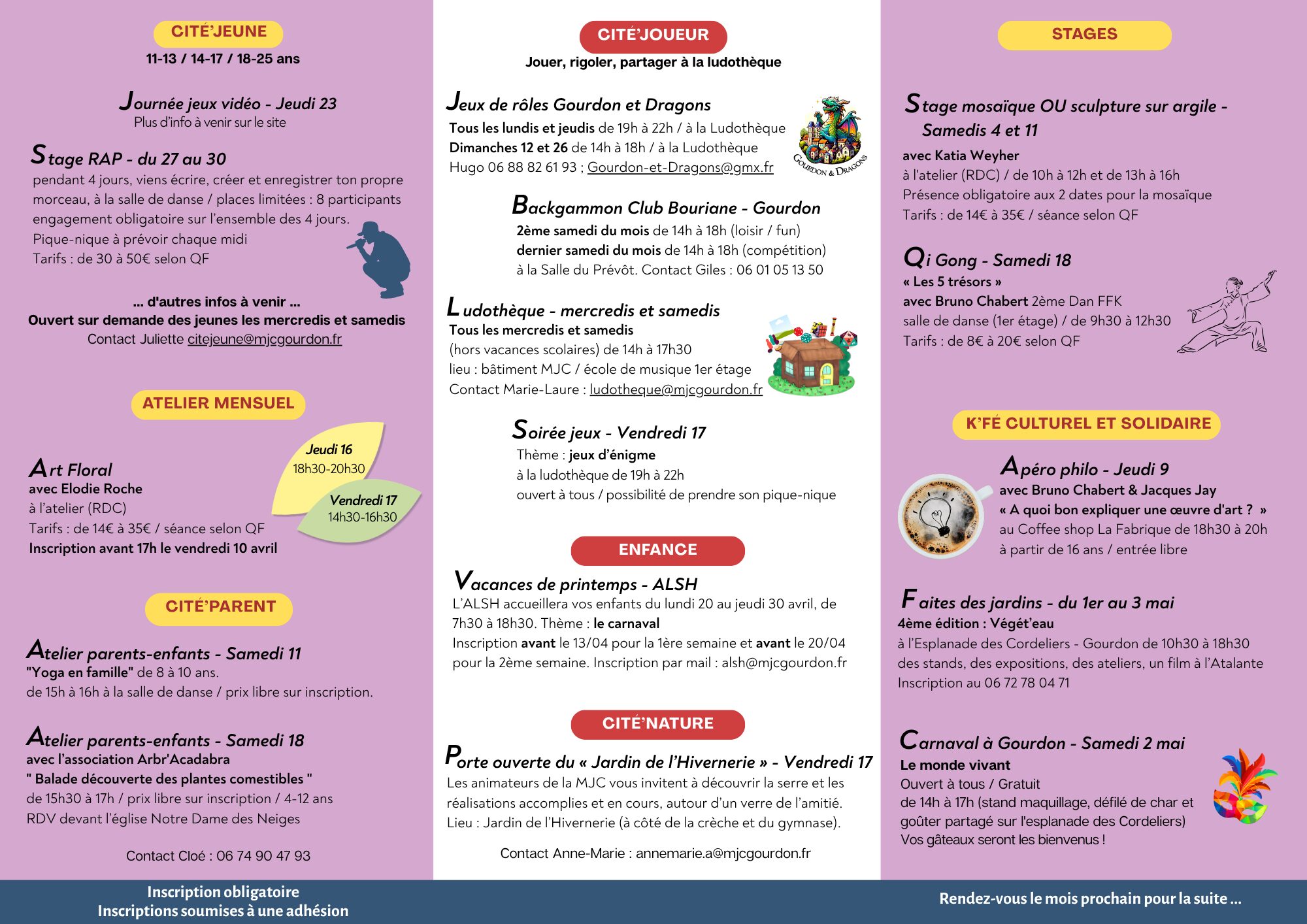 L’évènemensuel d’Avril 2026 MJC de Gourdon